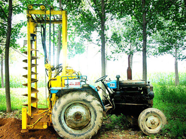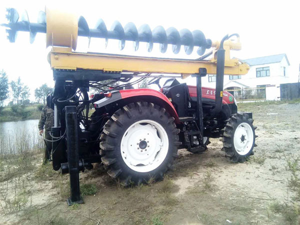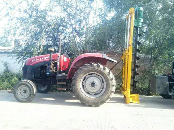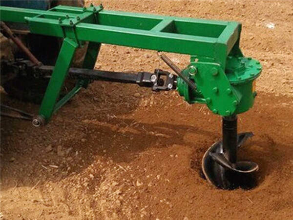 操作:拖拉機液壓起落裝置控制鉆桿提鉆;拖拉機行走對準坑穴;拖拉機動力輸出軸輸出旋轉動力。